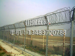 監(jiān)獄護(hù)欄網(wǎng)又稱(chēng)監(jiān)獄隔離柵,監(jiān)獄防護(hù)網(wǎng),監(jiān)獄鋼網(wǎng)墻,防攀網(wǎng)等,主要是采用高強(qiáng)度的刀片刺網(wǎng)與普通防護(hù)網(wǎng)的結(jié)合,由V型支架立拄,加強(qiáng)型焊接片網(wǎng),安全防盜連接件和刀片刺網(wǎng)組成.刀片刺網(wǎng)是一種新型防護(hù)網(wǎng),由銳利尖角鍍鋅鋼板或不銹鋼薄板做刀片,鋼絲做芯線組合而成的防護(hù)器材.